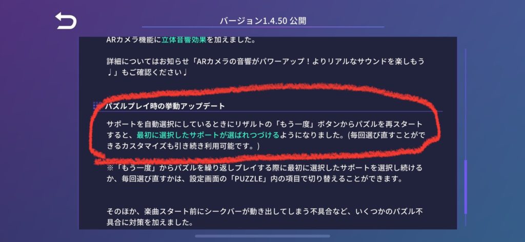 本部トラベローグ以降のアップデートにより『リザルト画面の「もう一度」からプレイ時にサポートカードを自動選択する』をONにしたときのサポートカードの挙動が変更されました。